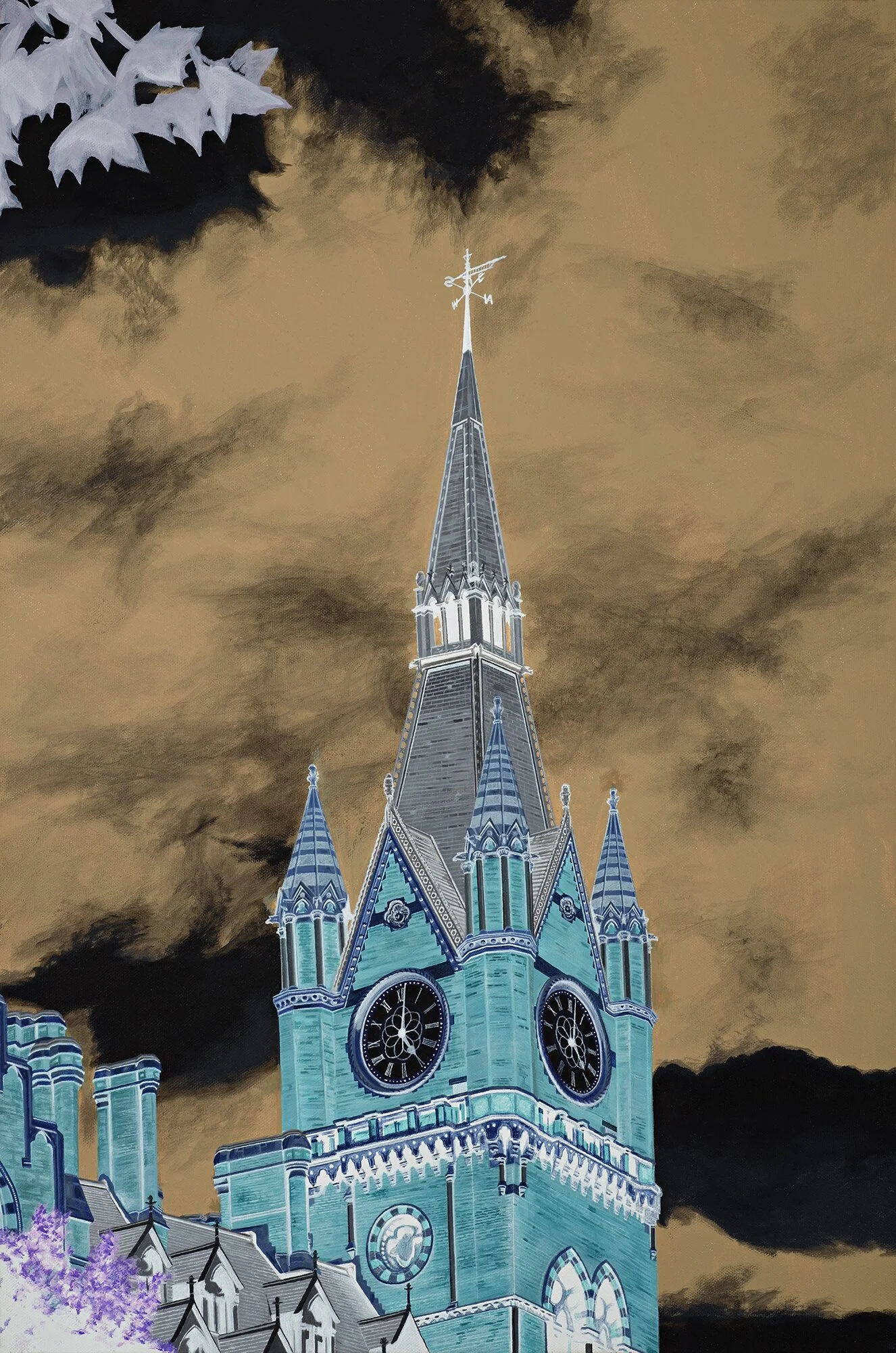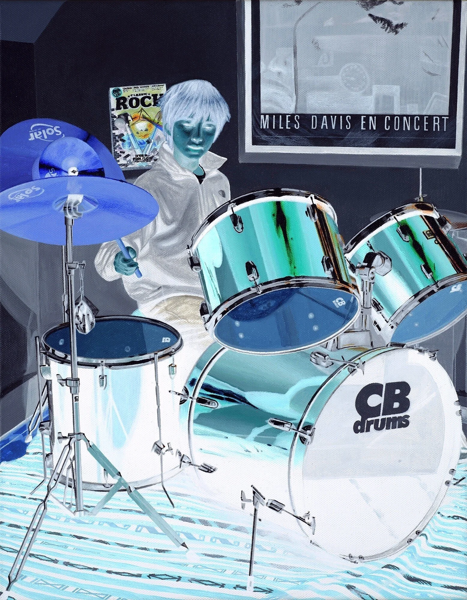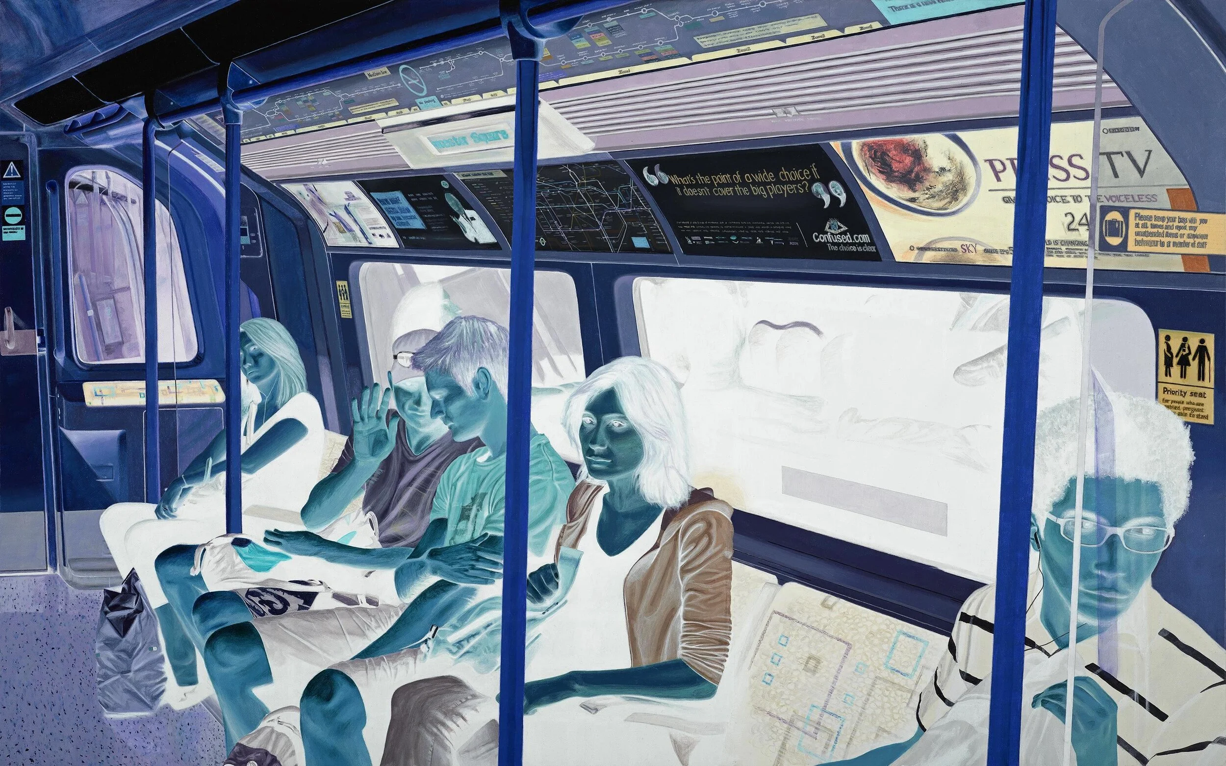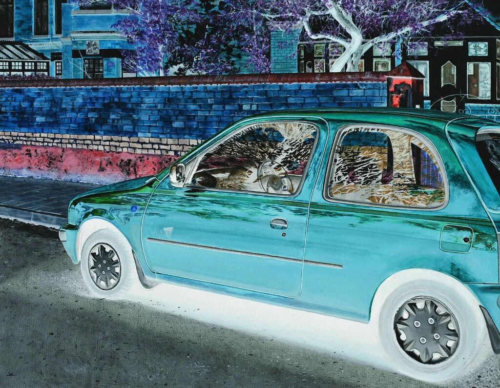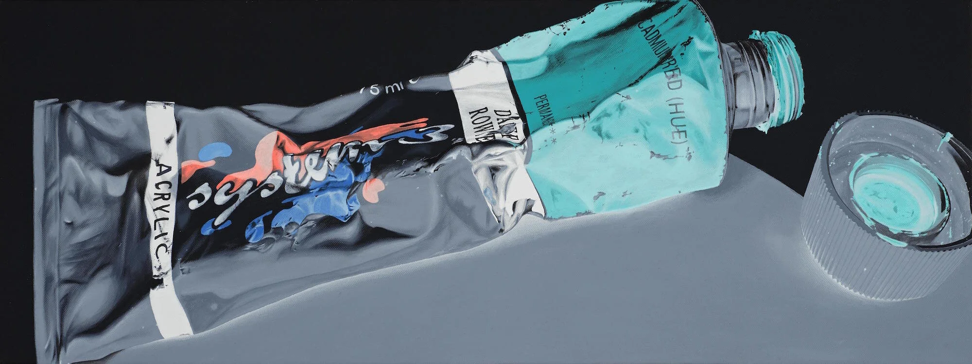 A series of diptych works comprised of an acrylic painting (the ‘Positive’) painted in negative colours, and a print (the ‘Negative’), which is produced by scanning the painting, inverting its colours to the more recognisable spectrum and then printing it at the same size as the original.